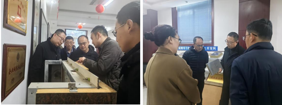 在技术交流环节,考察组就一体板胶粘剂的安全性能、施工控制与传统维护措施的差异性等关键问题提出了询问,并展开了深入的技术探讨。会后,考察组参观了研究院实验室,实地了解了相关检测设备与技术应用场景,进一步深化了对新型材料技术特性的认知。