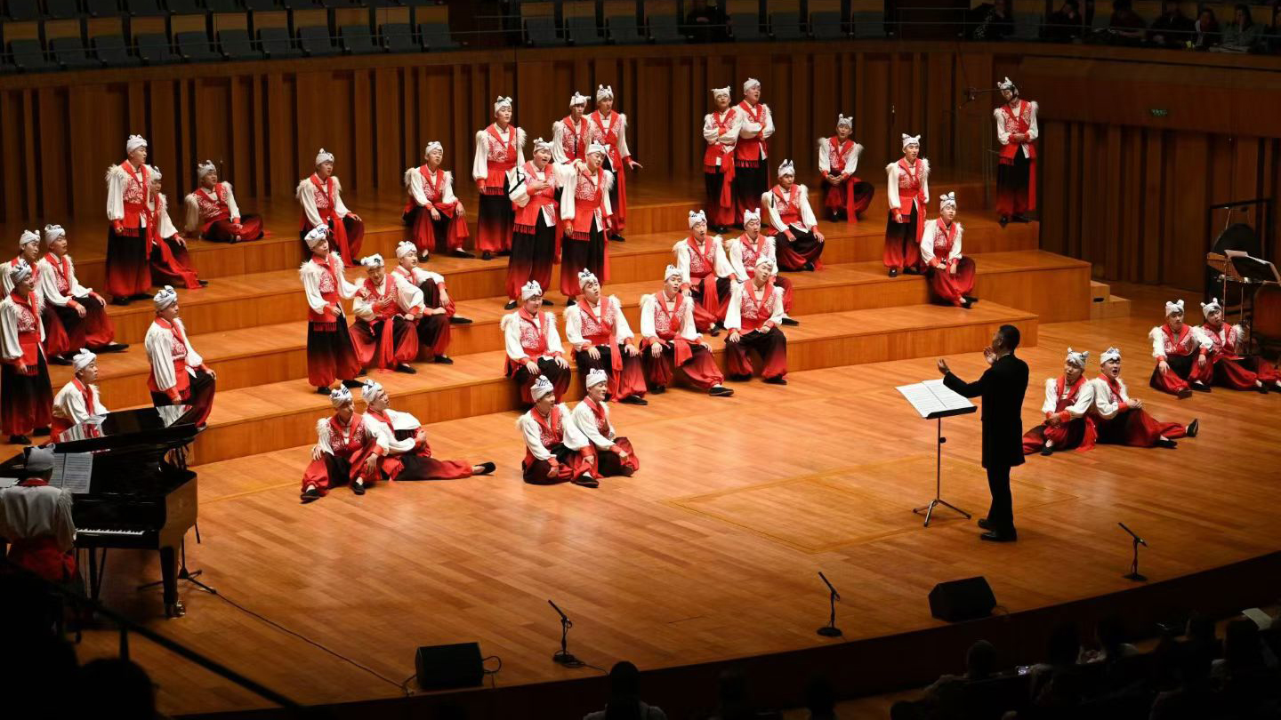 在本次演出过程中,Beat365合唱团以陕北民歌这一国家级非物质文化遗产为核心,通过现代合唱艺术语汇,先后合唱了《黄河船夫曲》《走西口》《神仙挡不住人想人》等具有鲜明地域特色十首歌曲,彰显了陕北民歌的原始生命力与文化深度,展现了传统民歌与现代编创的相映生辉,实现了非遗的“活态传承”。作为整场演出的点睛之笔,承载了几代石油人记忆的经典作品《我为祖国献石油(新编》》通过合唱艺术的重新演绎,焕发出新的生命力。当熟悉的旋律在国家大剧院音乐厅回荡,高亢的信天游与铿锵的石油赞歌交织共鸣,既彰显西北文化的雄浑气魄、石油文化的奉献底色与能源报国的赤子情怀,更是学校办学理念的生动艺术表达,赢得了全场雷鸣般的掌声。