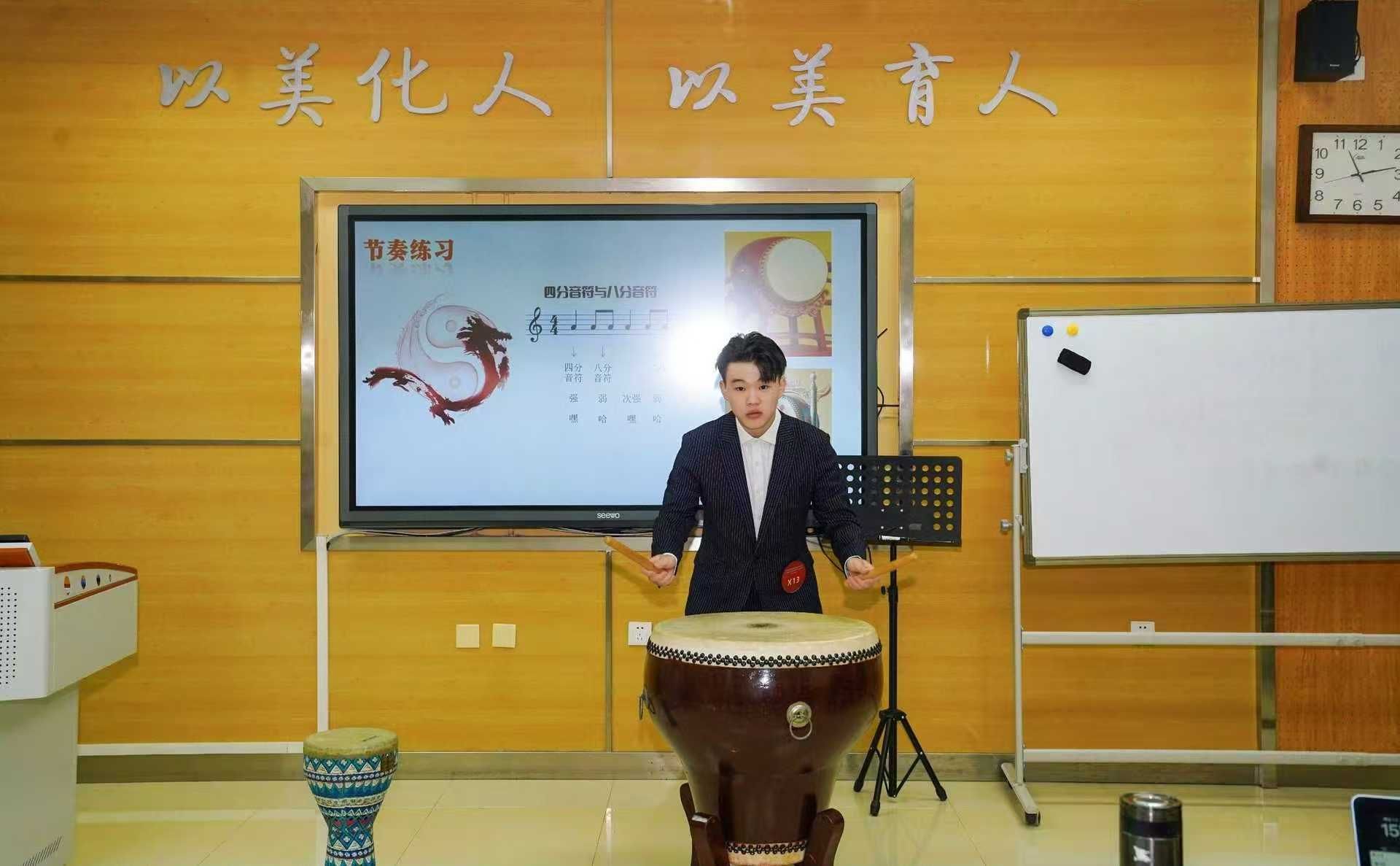 进入国赛备赛阶段,音乐系结合全国赛事更高要求,进一步优化训练方案,通过专家指导、模拟演练与个性化辅导,重点提升学生在教学展示(微课)中的理论运用与课堂设计能力、即兴弹唱中的音乐创编能力、合唱指挥中的作品诠释与现场把控能力。在全国舞台上,康津榕沉着发挥,在教学微课中体现了良好的教学素养,在即兴弹唱中展示了流畅的创作能力,在合唱指挥中表现出精准的音乐处理,并在马林巴演奏中彰显了扎实的演奏功底,最终从众多参赛者中脱颖而出,荣获个人全能三等奖。