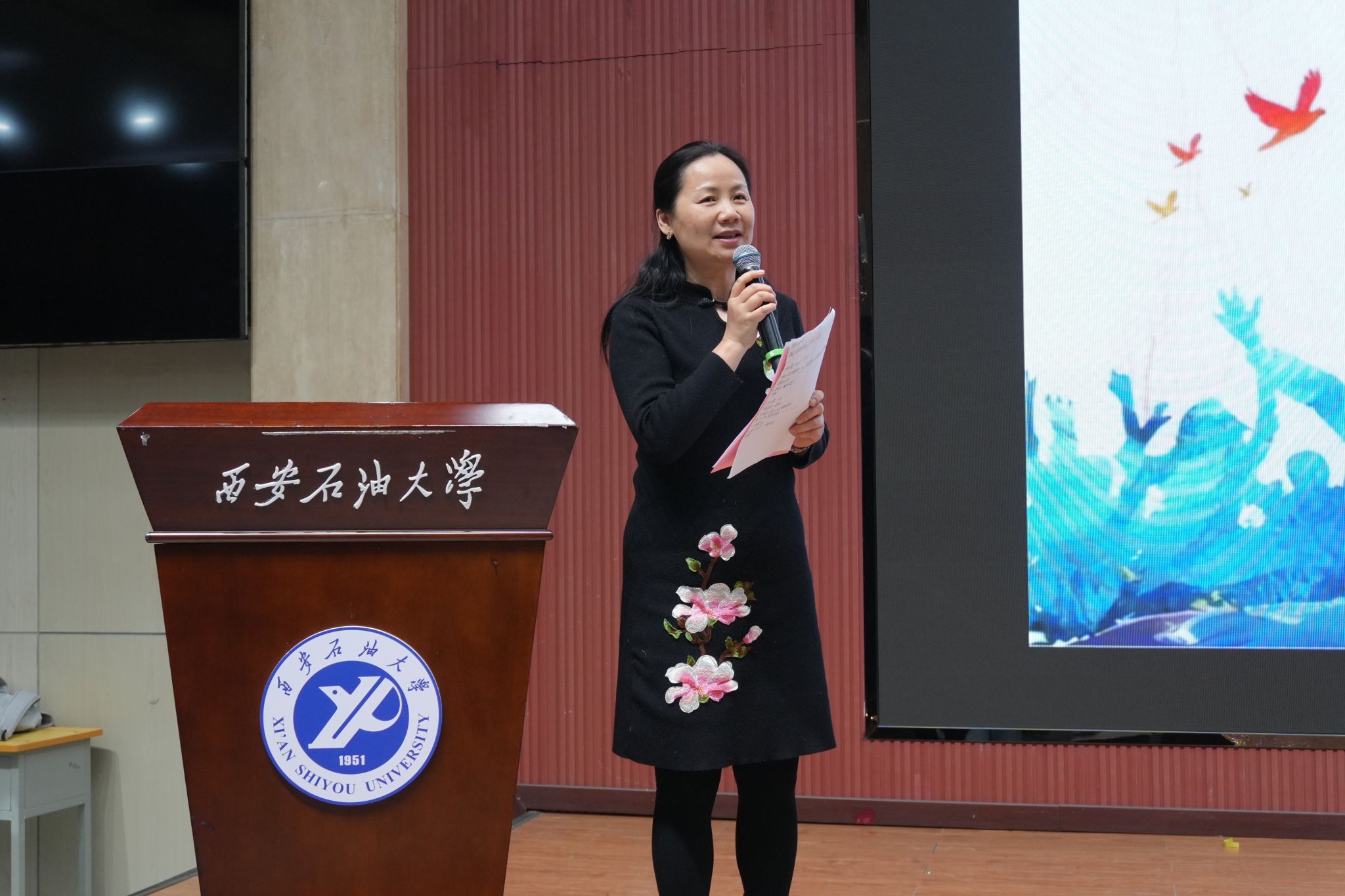 各参赛队伍表演完毕,肖琼教授从艺术性、专业性、教育性三个维度对他们的表现做了综合性点评。她表示,每一个作品都扎根大学生真实生活,既具艺术感染力,也饱含心理疗愈力,让同学们在沉浸式剧情中读懂了自我、学会了共情他人。最后,肖琼教授呼吁大家,在遇到心理困惑时,要勇于并及时向学生心理成长指导中心求助,共同携手守护我们的心理健康。