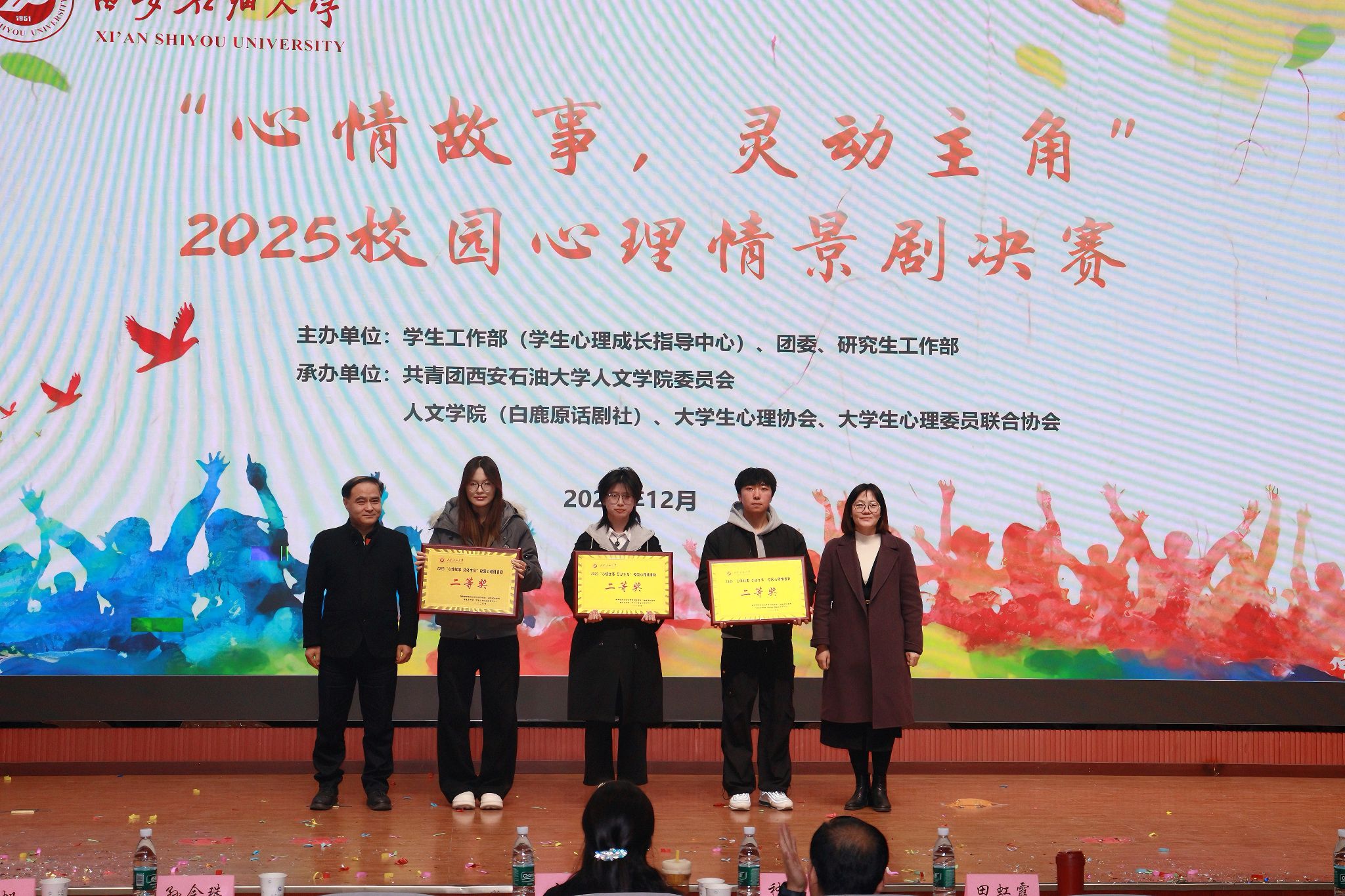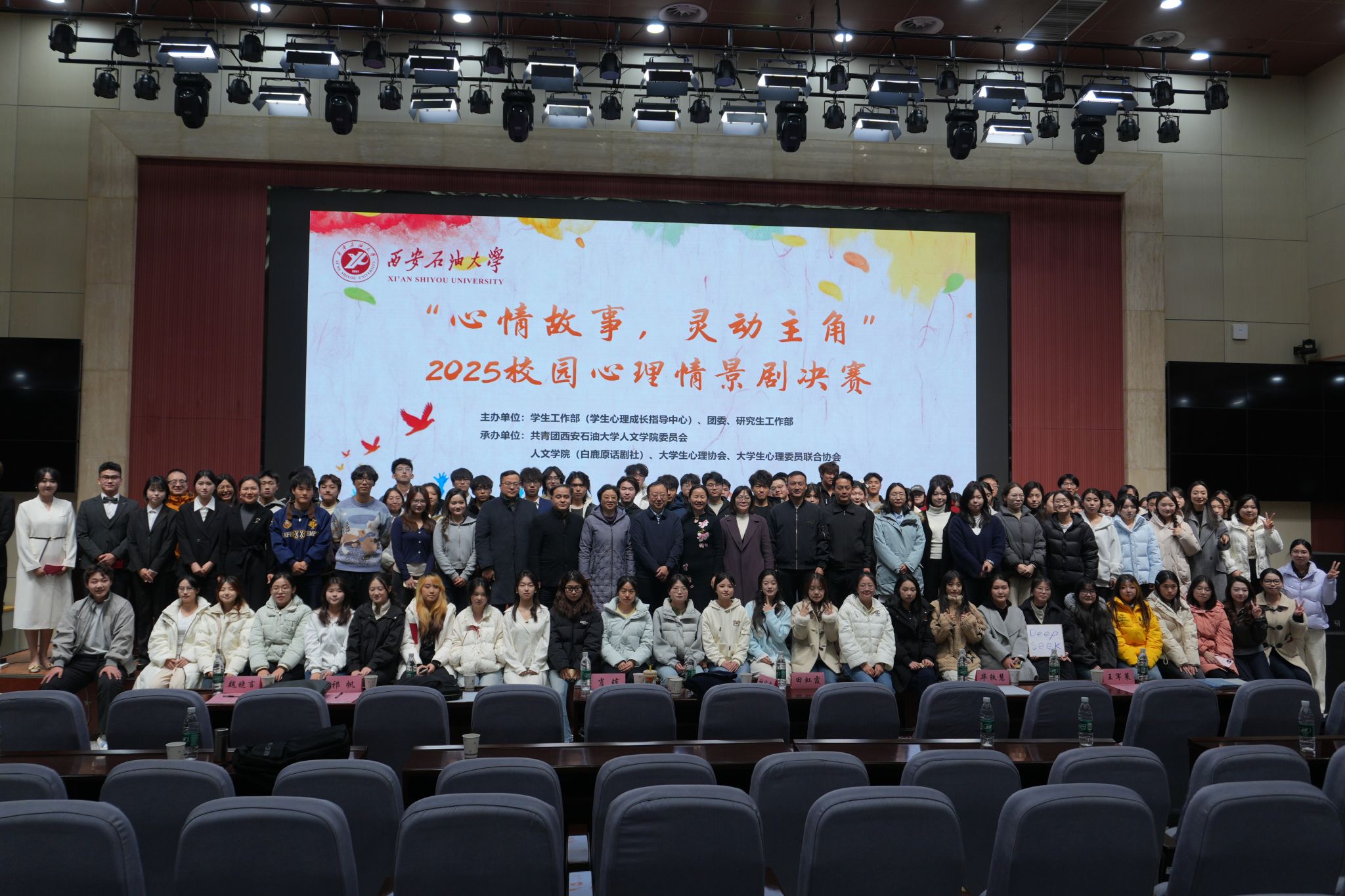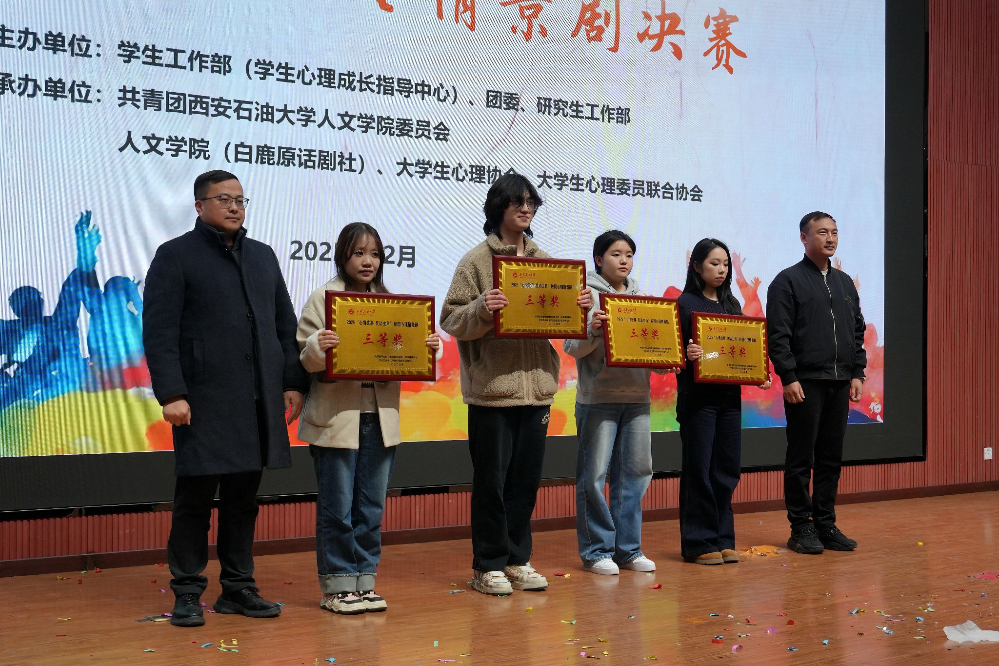 本次心理情景剧比赛由学生工作部(学生心理成长指导中心)、校团委及研究生工作部主办,人文学院、白鹿原话剧社、大学生心理协会、大学生心理委员联合协会承办。比赛的成功举办,不仅为同学们提供了一个展示自我、释放情感的平台,更是一次深刻的心理教育与心灵成长之旅。学校将继续秉持“以生为本”的教育理念,不断创新心理育人形式,为学生的健康成长保驾护航。