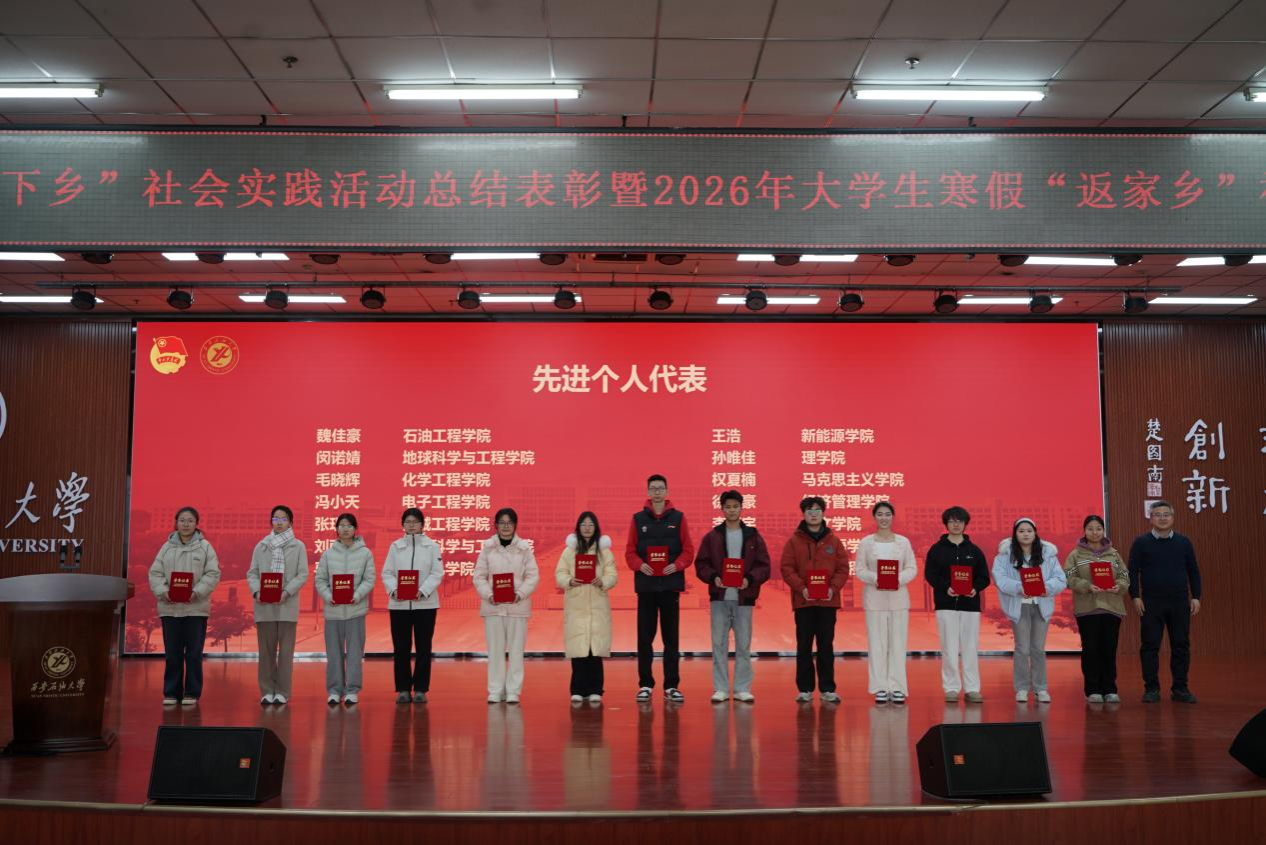 12月26日下午,学校2025年大学生暑期“三下乡”社会实践活动总结表彰暨2026年大学生寒假“返家乡”社会实践活动启动仪式在鄠邑校区腾辉大学生活动中心举行。副校长种宇宏出席会议并讲话,党委学生工作部、校团委、教务处、研究生工作部、马克思主义学院等单位负责人,各院(系)团委(团总支)书记,2025年大学生暑期“三下乡”社会实践活动受表彰师生代表,2026年大学生寒假“返家乡”社会实践活动师生代表共500余人参加会议。