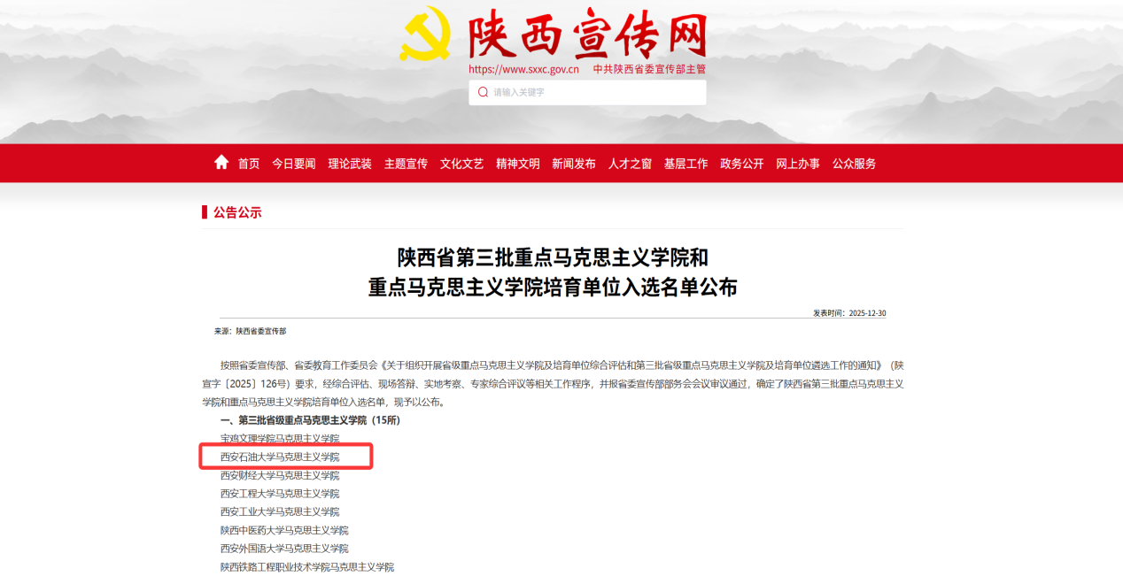 按照省委宣传部、省委教育工作委员会《关于组织开展省级重点马克思主义学院及培育单位综合评估和第三批省级重点马克思主义学院及培育单位遴选工作的通知》(陕宣字〔2025〕126号)要求,经综合评估、现场答辩、实地考察、专家综合评议等相关工作程序,并报省委宣传部部务会会议审议通过,确定了陕西省第三批重点马克思主义学院和重点马克思主义学院培育单位入选名单,Beat365马克思主义学院成功入选陕西省第三批重点马克思主义学院。这标志着Beat365马克思主义学院建设迈入了新的阶段,将在更高平台、更高层次上开启新时代马克思主义学院建设新征程。