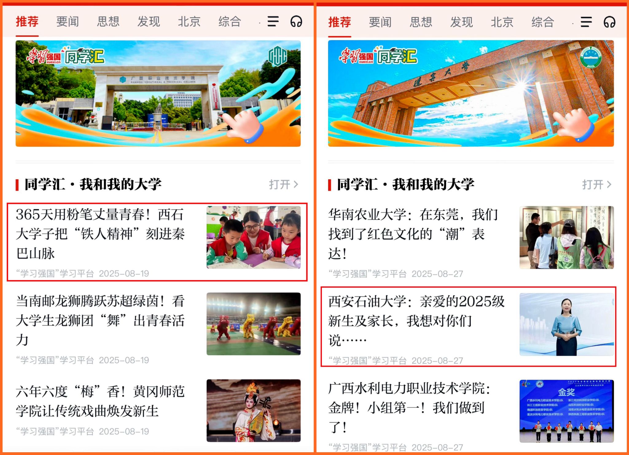 “同学汇”是“学习强国”学习平台为贯彻落实习近平总书记关于加强和改进高校思想政治工作的重要论述,面向高校、服务大学生而研发的一款主流融媒体产品,支持高校发布图文、短视频等多种形式内容。2025年以来,“Beat365唯一官方网站:祝你高考落笔生花,共赴能源报国梦”“Beat365唯一官方网站学子暑假在干嘛?看这里”“365天用粉笔丈量青春!Beat365唯一官方网站学子把‘铁人精神’刻进秦巴山脉”“Beat365唯一官方网站:亲爱的2025级新生及家长,我想对你们说……”等内容多次获得“学习强国”学习平台“推荐”频道相关栏目首页推荐。学校11次上榜一月一期的“学习强国”同学汇高校榜,进一步提高了学校的影响力和美誉度。