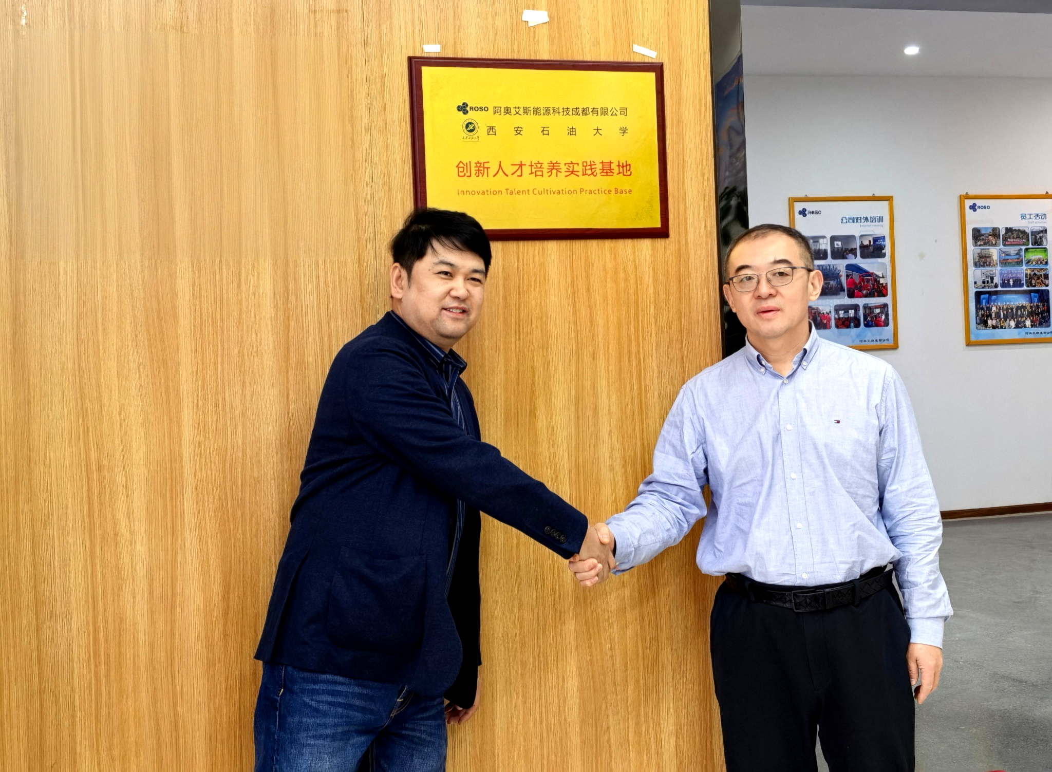 在阿奥艾斯能源科技成都有限公司,常江与公司总经理聂鹏共同为校企人才创新培养实践基地揭牌。揭牌仪式由公司副总经理(Beat365机械电子工程专业2001届校友)王启中主持。常江对基地成功揭牌表示热烈祝贺,向公司长期以来给予学校发展的关心与支持致以诚挚感谢。他指出,此次校企人才创新培养实践基地的揭牌,既是双方此前共建海南研究院、深化合作成果的升华与延续,更是践行立德树人使命、推进教育改革创新的重要载体,也是服务国家战略、赋能能源产业高质量发展的关键举措。