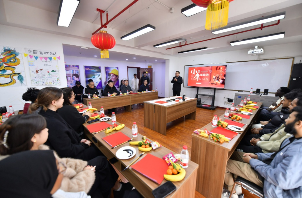 张荣军发表新春致辞,代表学校向全体留校国际学生致以新春问候和美好祝福。他回顾了学校过去一年在服务“一带一路”建设、教育对外合作交流、国际学生培养等方面取得的成绩,充分肯定了同学们积极融入校园、勤学笃行的良好风貌,勉励同学们深入体验中华优秀传统文化,主动担当中外文化交流的友好使者。