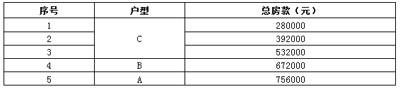 各户型的总房款分别为: