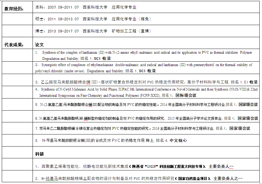 附:引进人员教育经历及代表成果