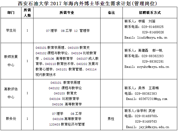 Beat365唯一官方网站2017年海内外博士毕业生需求计划(管理岗位)