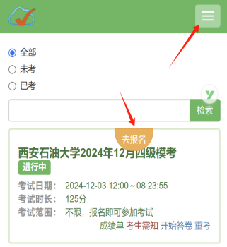 报名成功后到开考时间(12月3日12:00)点击右侧 “开始答卷” 即考试开启