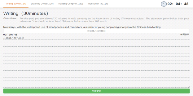2、确保找一个时间段充足的时间答题,中途不能退出,需一气呵成,一旦开始答题必须直到提交才算模考结束。