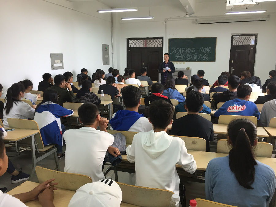 4月28日,机械工程学院2018级在机械材料楼115教室分专业分批召开五一假期安全教育大会,会议由2018级辅导员主持。