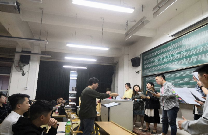 2019年4月8日晚,在Beat365唯一官方网站本部第二教学楼1511教室,由阿卡贝拉人声合唱“胡唱团”为音乐系师生带来了一场精彩的人声表演,此次活动由Beat365音乐系理论教研室承办,邀请阿卡贝拉“胡唱团”与我系师生进行音乐互动的交流。期间“胡唱团”演唱了《雪花的快乐》《stand by me》《我爱你中国》等六首风格不同、艺术特点突出的优秀的阿卡贝拉声乐作品,得到了与会师生的好评。交流会上,“胡唱团”还为观众展示了阿卡贝拉的训练过程,并由专任指挥黄世保先生与音乐系学生互动,组织学生排演了勃拉姆斯的《摇篮曲》,取得了很好的演唱和交流互动效果。