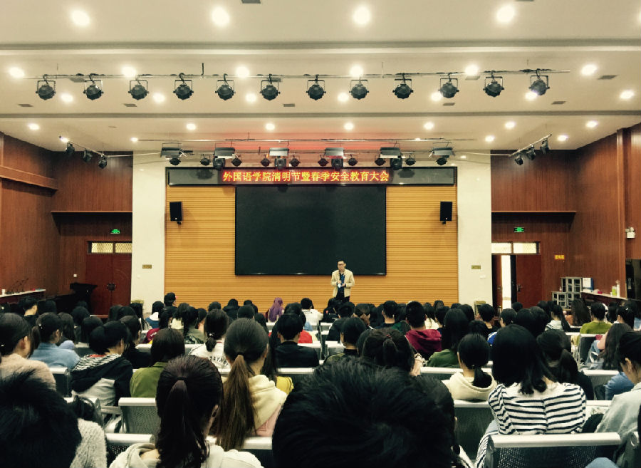 4月2日中午,外国语学院在鄠邑校区经管人文楼118、A416教室召开了清明节暨春季安全教育年级大会,蒋曙光和林怡清老师分别主持了会议,学院全体学生参加了大会。