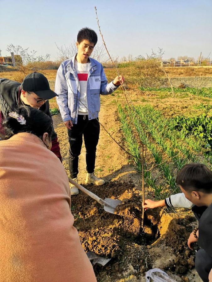 活动中,大家积极劳动,相互协作。各位党员同志表现出了极高的活动热情,向当地村民请教农作物常识及植树相关知识。村民们知无不答、答无不详,颇为热心地指导大家种树间距、挖坑技巧,帮助同学们埋土浇水。“垂阴当覆地,耸干会参天。好作思人树,渐作惠化传。”同学们化身“绿色使者”,为刚刚苏醒的乡村送去了生机,为刚刚解冻的自然带来了温暖。在张阳老师的带领下,大家相互帮助,团结协作,有条不紊地进行工作。在此春暖花开的季节,种下一棵棵树苗,留下一片片绿色,收获一个个希望。同学们的认真负责、朝气蓬勃得到了村民们的一致认可和充分肯定。