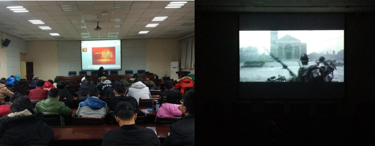 在“永不忘却、砥砺前行、影视交流”环节,集中播放了爱国主义影片《南京南京》,使大家进一步了解历史,激发研究生爱国主义情怀。