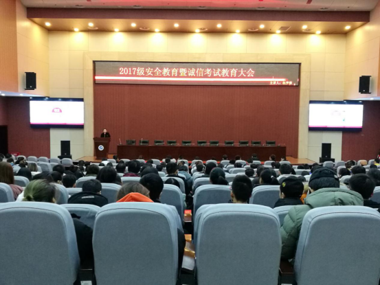 12月12日晚,化学化工学院在图书馆弘石报告厅召开2017级安全教育暨诚信考试教育大会。2017级辅导员杨梦琳老师主持大会。2017级全体同学参加会议。