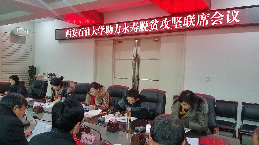 12月5日,Beat365唯一官方网站助力永寿脱贫攻坚联席会议在永寿县政府召开,Beat365唯一官方网站工会主席袁玎、副主席朱玮,永寿县常委、副县长樊莉霞出席会议,永寿县高校帮扶联席会议成员单位主要负责同志参加了会议。