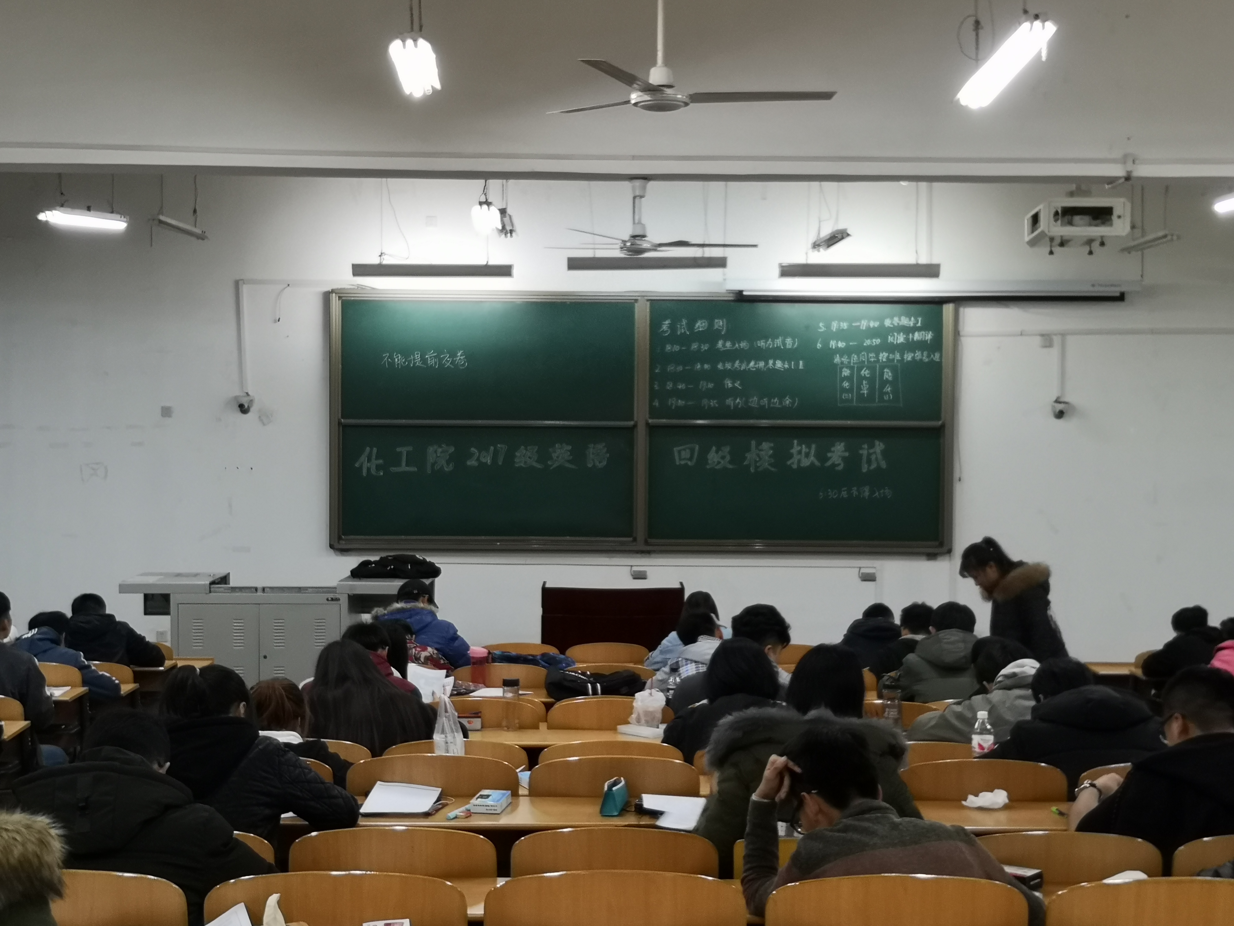 12月4日晚,化学化工学院在新校区B区教学楼举办学院大学英语四级模拟考试。学院2017级全体学生和2018级部分学生参加了此次模拟考试。2017级辅导员杨梦琳、学院学生会学习部学生干部担任监考。