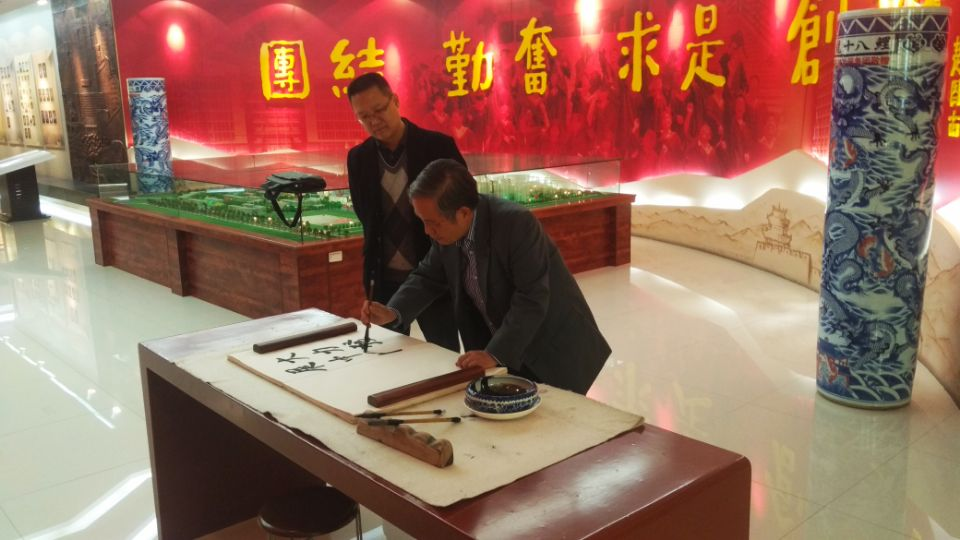 讲座开始前,学院党委副书记刘小波陪同Jerry C.Tien教授参观了学校铁人馆和校史馆。参观结束后,Jerry C.Tien教授为校史馆题字。