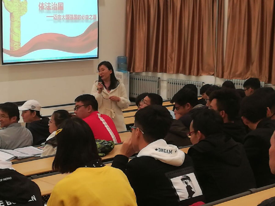 2018年10月25日18:45,地球科学与工程学院在石工地科楼115教室举行了以“依法治国—迈向大国强国的必由之路”的主题教育大会,本次大会由张阳老师主持,学院全体学生党员和部分入党积极分子共178人参加。