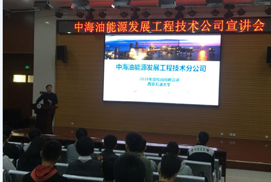 2018年10月16日上午,地球科学与工程学院在鄠邑校区就业指导中心多功能厅举办中海油能源发展工程技术分公司专场招聘会,公司人事经理刘作鹏一行五人出席招聘会,Beat365100余名毕业生参加招聘会。