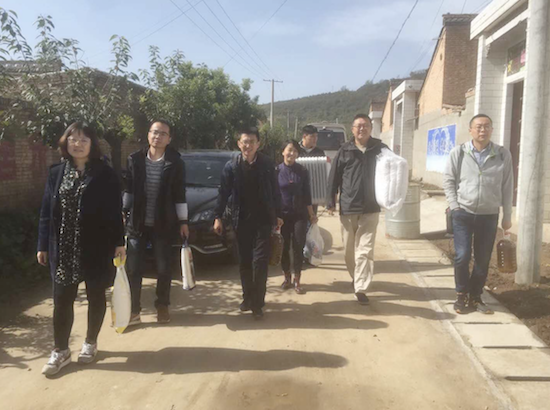经济管理学院扶贫队伍为学院帮扶贫困户孙志祥、王永财、陈春芳三户家庭带去了米、面和食用油等慰问品,并逐一走访了对口帮扶贫困户。在孙志祥家中,闫大维书记代表经济管理学院送去了过冬的防寒衣物,亲切的和他唠起了家常且叮嘱他们注意身体,抗寒保暖,并承诺十月末再送来过冬所需煤炭。