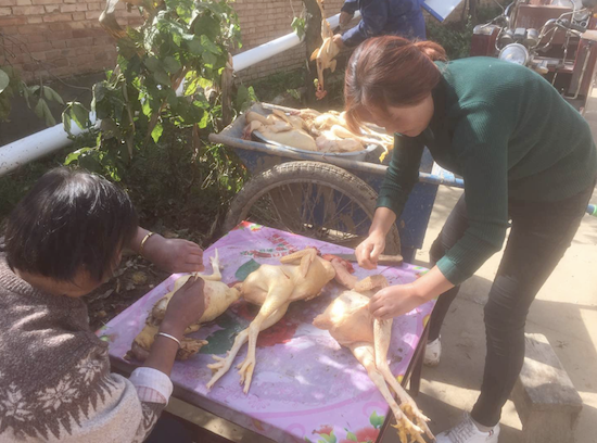 走到帮扶对象陈春芳家中,陈春芳老两口正在热火朝天的宰杀着经济管理学院订购的一批土鸡。早在今年三月份,由校工会、经济管理学院院工会出资,为陈春芳夫妇二人购买了鸡苗,搭建了鸡棚,经过半年多的精心饲养,土鸡已达到出售标准,在驻村第一书记齐基的关怀下,这批土鸡经过了卫生防疫部门的鉴定,达到食用标准。经济管理学院教师自发订购了67只土鸡,并交付了6900元购买费用(每只100元,加工费200元)。学院齐心协力,为陈春芳家巩固脱贫成果出了一份力。
