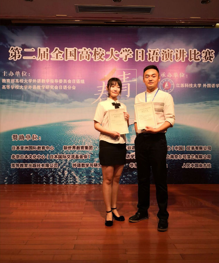 本次大赛分为命题演讲和即兴演讲两个部分。最终,陈昕玥同学凭借出色的发挥,获得大赛二等奖。外国语学院日语教师陈旭获得优秀指导教师奖。