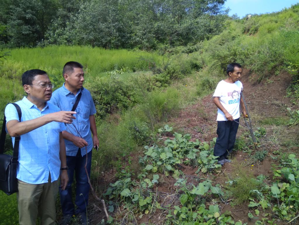 随后,马书记一行和王岁仔一同前往坚固村苟家梁的农田中,了解农业生产情况,并实地查看了学院产业帮扶项目--核桃树苗的生长情况。