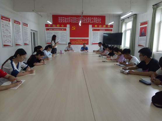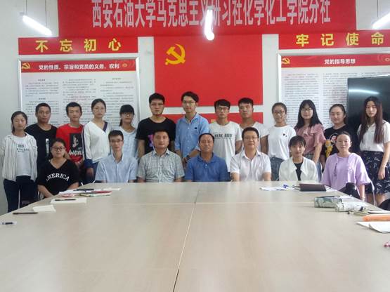 与会人员在董丙剑老师的带领下重温入党誓词。会上,李心宇同学宣读了校马克思主义研习社化学化工学院分社章程,社员代表曹成珺做代表发言。