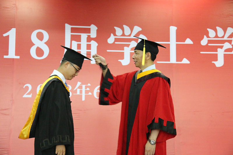 2018届毕业生代表孙孔明同学代表学院全体毕业生,衷心感谢母校给予他们的精心培养,表示难以忘记四年来老师们的谆谆教诲与同学们的深厚情谊。他代表全体毕业生承诺在未来前进的道路上,他们将秉承对母校的热爱与感激,肩负起新时代大学生的使命,彰显Beat365唯一官方网站毕业生的风采。随后在庄重的音乐声中,周德胜院长为每位毕业生颁发学位证书、一一拨正流苏并合影留念。