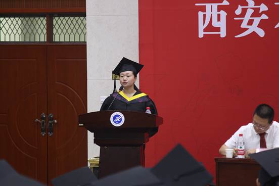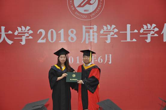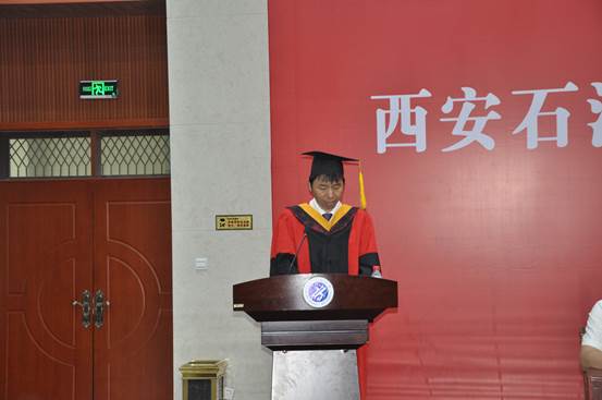 学位授予仪式在庄严的国歌声中开幕。侯琦书记代表学院在仪式上发表了热情洋溢的讲话,他首先代表学院向圆满完成学业并获得学士学位的全体毕业生表示热烈的祝贺!侯琦书记说,四年时光,学院见证了每一位同学的成长与收获,同时,同学们也见证了学校获批博士学位授予单位、鄠邑校区东大门的建成启用、新操场的投入运行等学校发展时刻。新时代中国对同学们而言既是挑战,也是施展才华的好机会。他对毕业生提出了四点希望和嘱托:一是继续弘扬铁人精神和石油精神,充分发挥自身优势,以青年人应有的责任和担当让青春绽放光彩。二是坚持对卓越的追求,以时不我待只争朝夕的踏实精神实现人生目标。三是激活正能量拥有好心态,面对困难挫折时拥有好心态是转变角色、适应社会的关键。四是筑梦人生,精彩一生。要敢于有梦、善于筑梦、勤于追梦,实现自己的人生价值,为祖国、为社会添砖加瓦,为母校、为父母增光添彩。