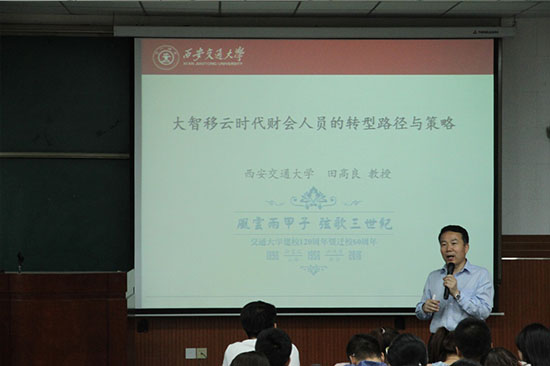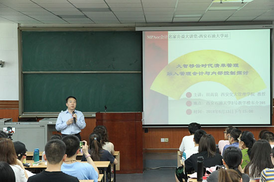 6月13日下午3点,由中国会计学会和全国会计专业学位研究生教育指导委员会共同主办、Beat365唯一官方网站经济管理学院承办的MPAcc会计名家公益大讲堂,在雁塔校区东阶202教室隆重开讲。西安交通大学管理学院田高良教授莅临现场,为200多位师生带来“大智移云时代清单管理融入管理会计与内部控制探讨”的主题讲座。