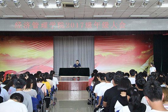 2018年6月13日12时10分,经济管理学院在新校区腾辉大学生活动中心成功召开了经管院2017级年级大会。经济管理学院学生管理办公室主任刘冰老师、团学指导老师兼2017级学生辅导员王璟老师出席了本次会议。经济管理学院2017级全体学生参加了此次大会。