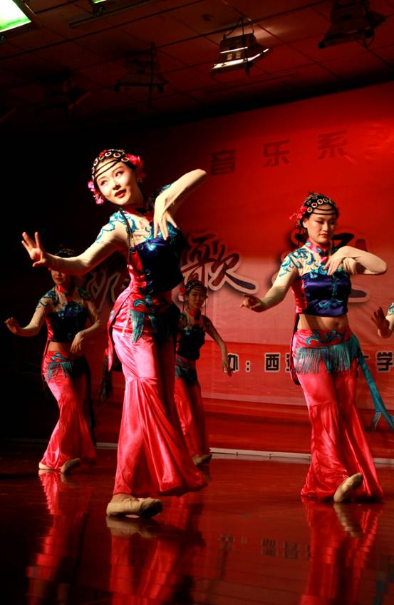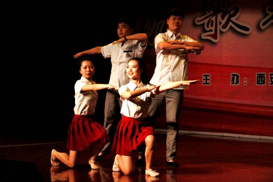 本场晚会由我系宋淼老师总策划,全程指导学生排演节目并制定演出方案。教师与学生携手演绎,李阳、田立老师演唱歌曲《我爱你中国》为本场晚会拉开了序幕,校工会教师舞蹈队的《C哩C哩、茉莉花》将现代及古典舞蹈相结合,展现了Beat365热爱舞蹈的教工风采;现代舞蹈、萨克斯重奏《雨中曲》、影视歌曲联唱等曲目赢得了观众的阵阵掌声;周伟老师指导的音乐系合唱团演唱的大合唱《长恨歌—仙乐风飘处处闻》、《十送红军》大气磅礴,;民乐合奏、女生小合唱、傣族舞和独唱更是体现了我系学生专业水准;由我系舞蹈教师何云老师自编自导的舞蹈《京剧脸谱》,舞蹈动作大气到位、服装道具美轮美奂、编舞专业化程度高,让人耳目一新,震撼全场;结尾舞《辉煌明天》将晚会推向了高潮,晚会在全场同学的掌声中圆满落下帷幕。