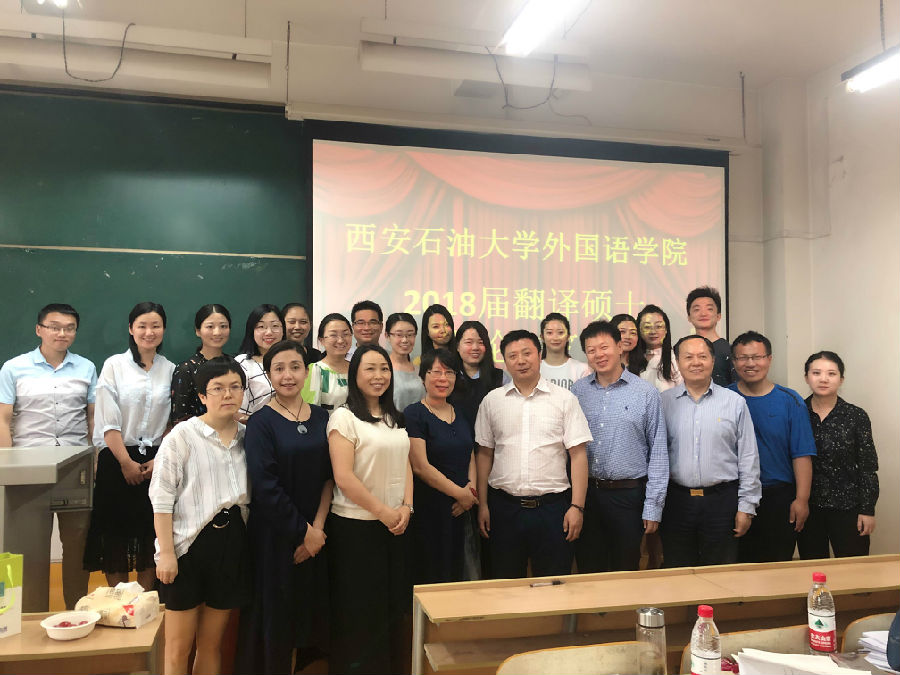 6月3日全天,外国语学院2018届翻译硕士研究生毕业论文答辩在雁塔校区2号教学楼1006室准时进行并圆满完成。此次答辩邀请了西安外国语大学孙毅教授为答辩委员会主席,知识产权出版社翻译中心胡新华高级译审担任校外答辩委员会委员,外国语学院于艳英、袁森、刘辉、陈柯、董梅等5位硕士生导师担任校内答辩委员会委员,2016、2017级全体翻译硕士研究生旁听了答辩。
