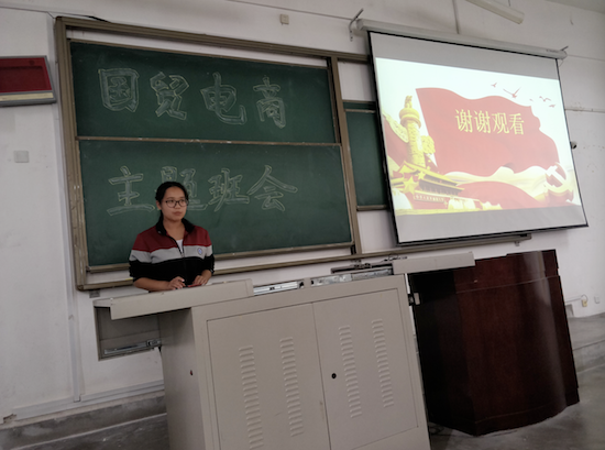 首先,国贸1701播放了“习近平总书记在北京大学师生座谈会上的讲话、纪念马克思诞辰 200 周年大会上的讲话”、“五四运动”、“建党伟业”等视频片段,使同学们对讲话精神和党史知识有了更清晰、深刻的认识。学生代表李梦飞、李贞、王林与大家一起分享了自己在系统学习相关党史和党的理论知识过程中的心得体会,这次分享让同学们感触颇多,从同龄人的角度出发,鼓励同学们把握当下、勤奋好学、责任担当、健康向上,激发了同学们今后学习的主动性。穿插在班会中间的答题环节,极大地调动了同学们的积极性,大家踊跃参与,竞相抢答。主题班会的最后,团支书杜旭蕊同学对本次班会进行了总结。