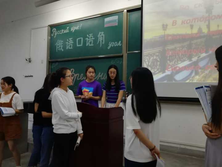 “俄语口语角”活动旨在鼓励同学将“俄语”运用到生活中来,不做语言的哑巴;熟练掌握俄语,为赴俄罗斯留学作准备。此次活动以“时间”为主题,以小组为单位,采取问答方式进行。由于前期准备充分,同学们热情高涨,现场气氛活跃。针对提出的问题,同学们各抒己见,展开了热烈的讨论。在讨论中同学们用俄语充分表达了对“时间”的认识,提高了同学们俄语口语水平。