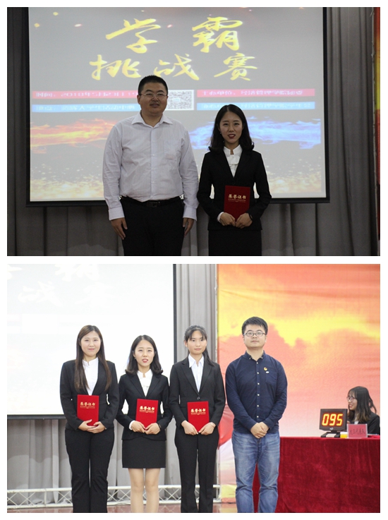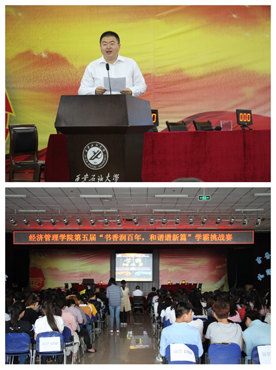 5月23日19时,由校团委主办、经济管理学院承办的第五届“书香润百年、和谐谋新篇”学霸挑战赛在新校区腾辉大学生活动中心成功举办。经济管理学院党委副书记赵海涛老师、校团委马琦老师、经管院部分学工干部以及600余名学生共同观看了此次比赛。