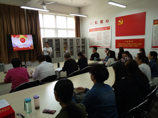比赛开始前,闫大维书记强调,本次讲党课比赛要紧紧围绕学懂弄通做实党的十九大精神和深刻领会习近平新时代中国特色社会主义思想,牢固树立“四个意识”,增强“四个自信”,做到“四个服从”;要紧紧围绕新时代党的建设总要求,以提升组织力为重点,突出政治功能,加强和改进党支部工作,落实党支部工作职责,发挥好党支部宣传党的主张、贯彻党的决定、团结动员群众、推动改革发展的坚强战斗堡垒作用;要紧紧围绕“四讲四有”合格党员标准,教育引导广大党员立足岗位做表率,在教书育人、管理育人、服务育人、成长成才等方面发挥党员先锋模范作用等内容讲心得、谈体会、讲做法、谈效果。