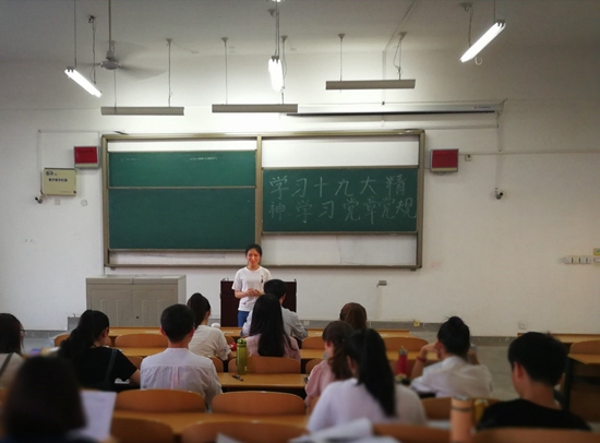 经济管理学院2014级非商管学生第二党支部雒士怡同志谈到,“党的十九大的召开,令我深受鼓舞。我意识到做合格的共产党员要始终坚持学习,学习党章党规和党的十九大精神,不断武装自身,要始终做到政治坚定,纪律严明,品行端正。”