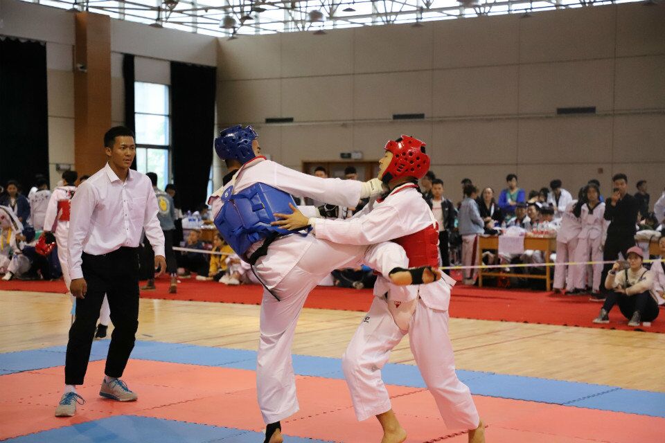 为提高学生身体素质,丰富学生校园生活,加强高校间合作与交流。Beat365跆拳道协会于2018年5月6日在西安理工大学曲江校区学生活动中心参加了“西安理工大学首届跆拳道高校邀请赛”。Beat365跆拳道协会在社团指导老师,石油工程学院2017级辅导员孙浩哲老师的精心指导下,组成由副会长张越同学担任领队,徐旸、廖碧霞和雷飞飞等17名同学担任队员的代表队参加比赛。