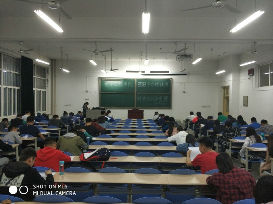 5月8日晚19:00,电子工程学院心理健康科普知识竞赛在鄠邑校区B座楼如期举行。本次竞赛共分为四个考场,全院四个年级共438名同学参与了本次竞赛。