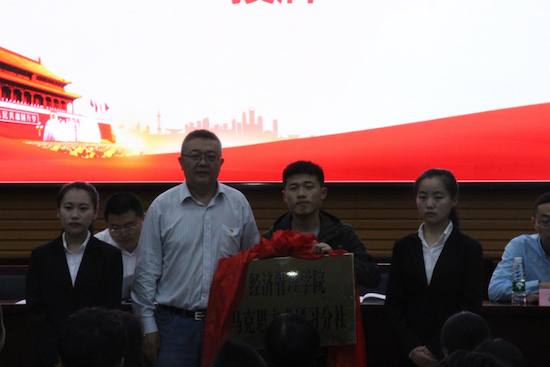 会上,闫大维书记为马克思主义研习社经济管理学院分社授牌,并解读了习近平总书记在纪念马克思诞辰200周年大会上发表的重要讲话。闫书记指出,在纪念马克思诞辰200周年大会上,习近平总书记发出“不断开辟当代马克思主义、21世纪马克思主义新境界”的时代强音!习近平新时代中国特色社会主义思想,是对马克思列宁主义、毛泽东思想、邓小平理论、“三个代表”重要思想、科学发展观的继承和发展,是马克思主义中国化最新成果。发展无止境,对真理的认识也没有止境。如何牢牢把握时代脉搏,在无止境的发展中不断完善自己、超越自己,开辟马克思主义新境界,是习近平提出的重大时代命题。