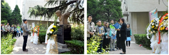 在“悼英雄,缅怀光辉事迹”环节,在石油工程学院温迪同学主持下,与会师生集体默哀,本科生代表叶楠带领大家回顾了英雄事迹;石油工程学院、研究生院党委书记马勇、高荣芳,石油工程学院院长周德胜、党委副书记张建高、唐春雨烈士生前班主任老师李琪、学生管理办公室主任孙会珠,研究生辅导员周钰桐,本科生辅导员朱战威、张楠、刘晓阳、严维博、孙浩哲等,同本科生、研究生党员代表,研究生会代表一起,依次在春雨烈士塑像前行三鞠躬礼并献花,表达对烈士的无限哀思和敬意。时在鄠邑校区上课的石油工程教师、唐春雨烈士生前同学徐波,也转达了班级同学对烈士的无限缅怀。