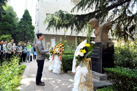 2018年4月16日 上午,石油工程学院与研究生院在雁塔校区“春雨苑”共同举行 “缅怀‘春雨’寄哀思,感悟奉献铸忠魂”烈士悼念活动,深切悼念29年前因救落水女工而不幸牺牲的唐春雨烈士。研究生院党委书记高荣芳,石油工程学院党委书记马勇、院长周德胜、党委副书记张建高、教师代表李琪、学生管理办公室主任孙会珠、研究生院和石油工程学院辅导员代表以及100余名研究生和本科生党员一起参加了悼念仪式。