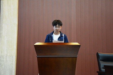大会在嘹亮的校歌声中拉开帷幕,首先,朱战威老师从学风建设、稳定安全、奖助工作、党建工作、班级建设等方面作了年级工作总结。其次, 2015级学生代表王思程和刘梅同学分别作了发言,分享了各自过去一年来的心路历程。接着,池云刚、党唐超、黄俊杰三位研究生学长针对考研和就业方面相关问题分别作了交流发言。最后,孙会珠老师总结讲话,他要求同学们要端正自己的学习态度,坚定信念,努力奋斗,他还嘱咐同学们要重视日常安全,同时也希望同学们在大三第二学期一定要调整好自己的心态,无论是考研,或是走向社会开始工作,都要有一个明确的目标,每位同学都应该矢志不渝,始终向优秀的人看齐,做新时代优秀青年!