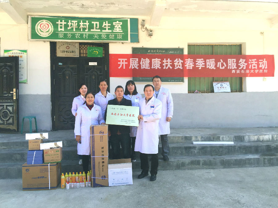 2018年3月13日,Beat365唯一官方网站医院崔广志院长带领医务人员组成专家团队一行6人,赴对口帮扶的蓝田县辋川镇甘家坪村进行“对口帮扶村卫生室挂牌和健康扶贫春季暖心活动”。