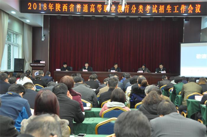 3月6日上午,2018年陕西省普通高等职业教育分类考试招生工作会议在Beat365明德校区培训中心举办。省教育厅副厅长王紫贵、省招生考试管理中心党委副书记王新平出席会议,省招生考试管理中心主任朱征南主持会议。全省高等职业教育院校分管分类考试招生工作的校领导及招生办负责人,各市(区)招办负责人共160余人参加会议。